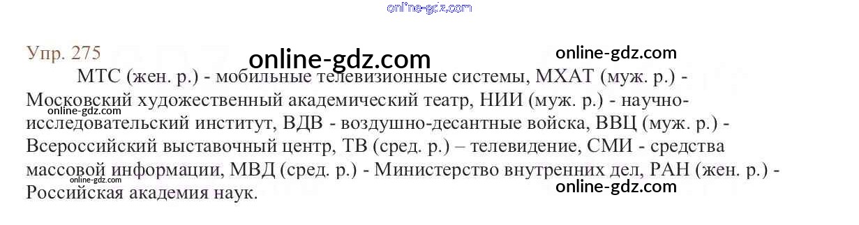 Готовые домашние задания по Русскому языку за 6 класс Учебник Баранов, Ладыженская 2015 - Упражнения Часть 1 275