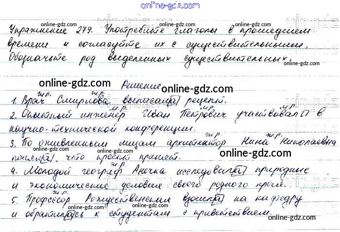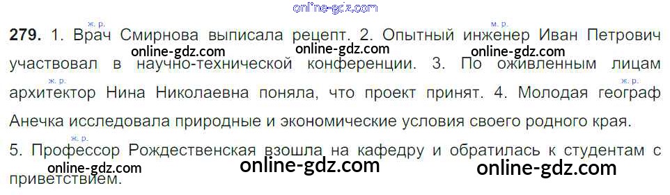 Готовые домашние задания по Русскому языку за 6 класс Учебник Баранов, Ладыженская 2015 - Упражнения Часть 1 279