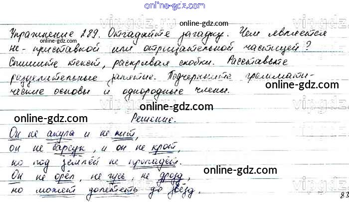 Готовые домашние задания по Русскому языку за 6 класс Учебник Баранов, Ладыженская 2015 - Упражнения Часть 1 289