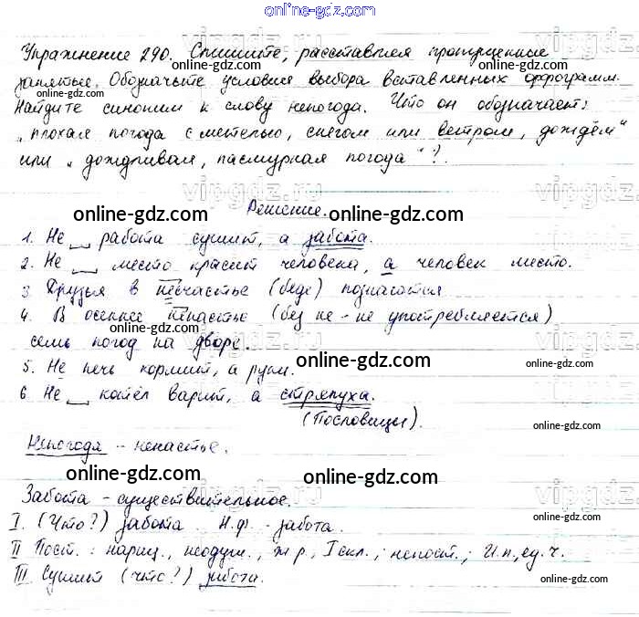Готовые домашние задания по Русскому языку за 6 класс Учебник Баранов, Ладыженская 2015 - Упражнения Часть 1 290