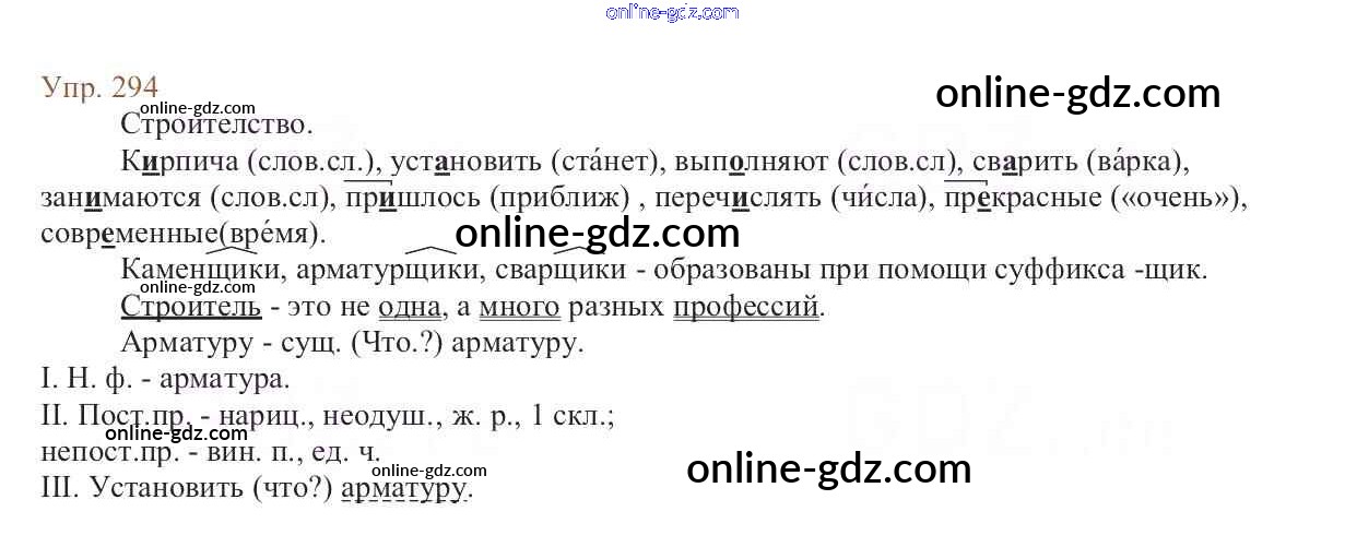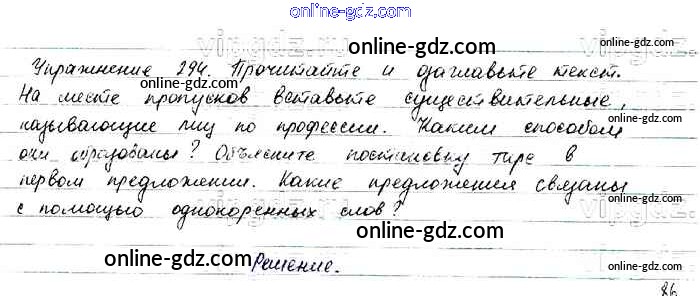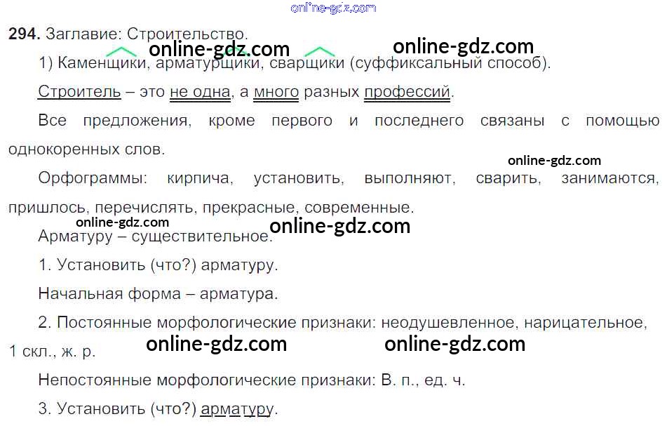 Готовые домашние задания по Русскому языку за 6 класс Учебник Баранов, Ладыженская 2015 - Упражнения Часть 1 294