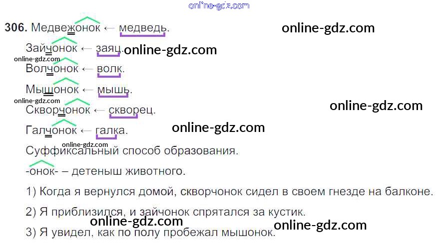 Готовые домашние задания по Русскому языку за 6 класс Учебник Баранов, Ладыженская 2015 - Упражнения Часть 1 306