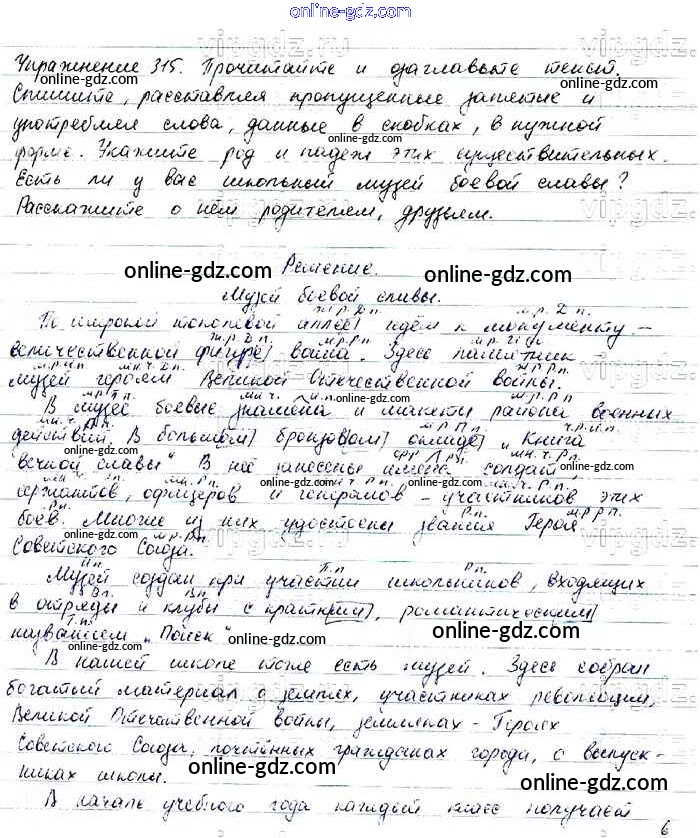 Готовые домашние задания по Русскому языку за 6 класс Учебник Баранов, Ладыженская 2015 - Упражнения Часть 1 315