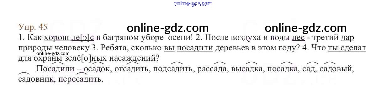 Готовые домашние задания по Русскому языку за 6 класс Учебник Баранов, Ладыженская 2015 - Упражнения Часть 1 45
