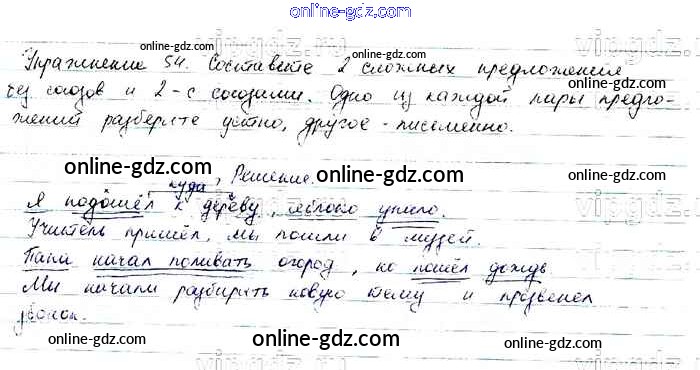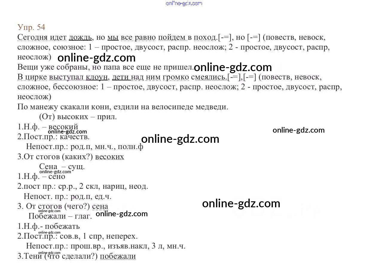 Готовые домашние задания по Русскому языку за 6 класс Учебник Баранов, Ладыженская 2015 - Упражнения Часть 1 54