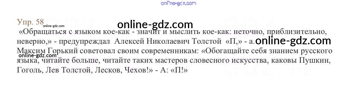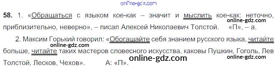 Готовые домашние задания по Русскому языку за 6 класс Учебник Баранов, Ладыженская 2015 - Упражнения Часть 1 58