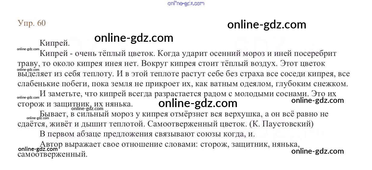 Готовые домашние задания по Русскому языку за 6 класс Учебник Баранов, Ладыженская 2015 - Упражнения Часть 1 60
