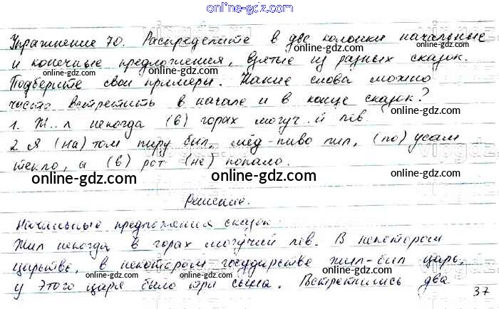 Готовые домашние задания по Русскому языку за 6 класс Учебник Баранов, Ладыженская 2015 - Упражнения Часть 1 70