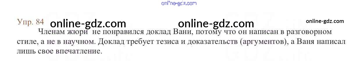 Готовые домашние задания по Русскому языку за 6 класс Учебник Баранов, Ладыженская 2015 - Упражнения Часть 1 84