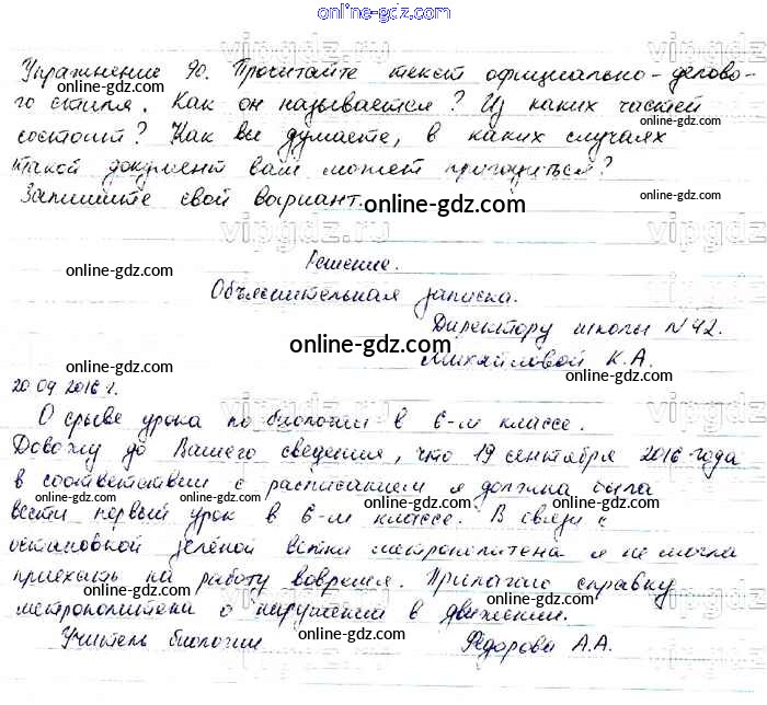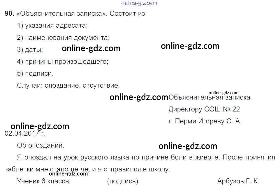 Готовые домашние задания по Русскому языку за 6 класс Учебник Баранов, Ладыженская 2015 - Упражнения Часть 1 90