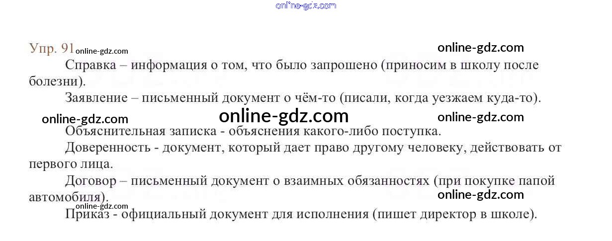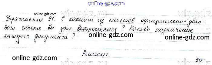 Готовые домашние задания по Русскому языку за 6 класс Учебник Баранов, Ладыженская 2015 - Упражнения Часть 1 91