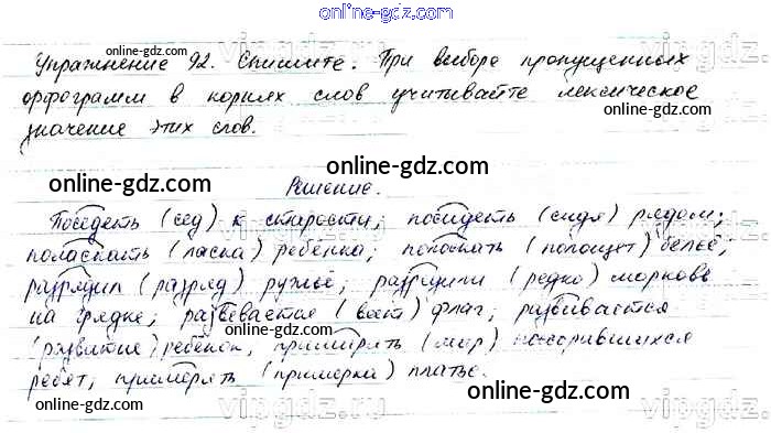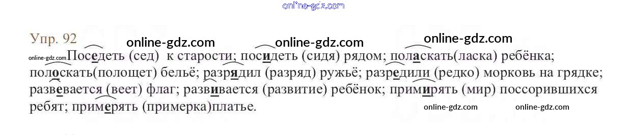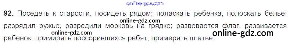 Готовые домашние задания по Русскому языку за 6 класс Учебник Баранов, Ладыженская 2015 - Упражнения Часть 1 92
