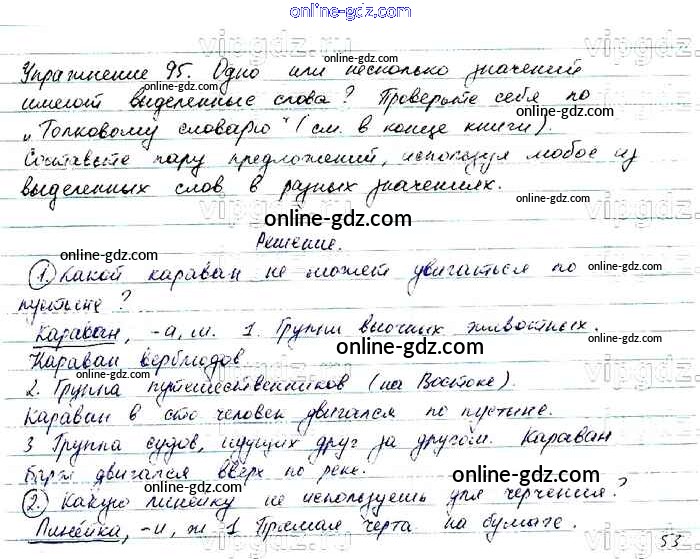 Готовые домашние задания по Русскому языку за 6 класс Учебник Баранов, Ладыженская 2015 - Упражнения Часть 1 95