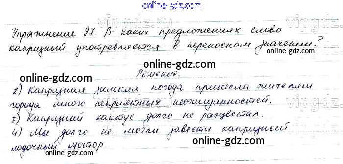 Готовые домашние задания по Русскому языку за 6 класс Учебник Баранов, Ладыженская 2015 - Упражнения Часть 1 97
