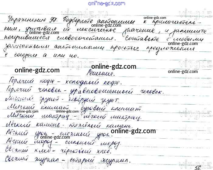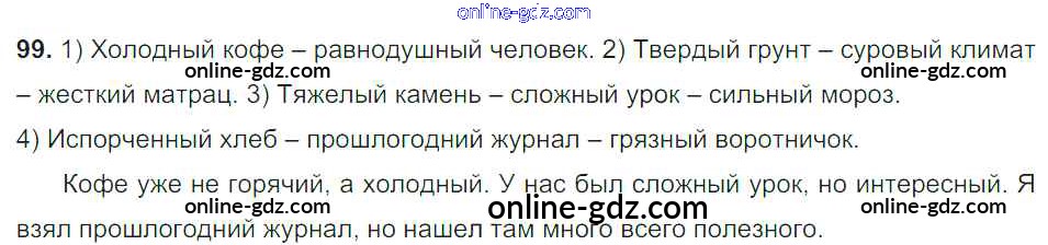 Готовые домашние задания по Русскому языку за 6 класс Учебник Баранов, Ладыженская 2015 - Упражнения Часть 1 99