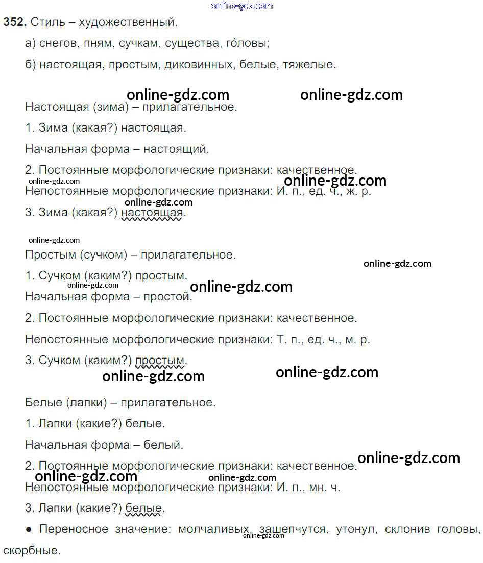 Готовые домашние задания по Русскому языку за 6 класс Учебник Баранов, Ладыженская 2015 - Упражнения Часть 2 352