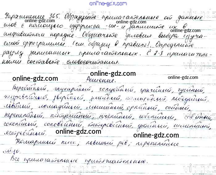 Готовые домашние задания по Русскому языку за 6 класс Учебник Баранов, Ладыженская 2015 - Упражнения Часть 2 365