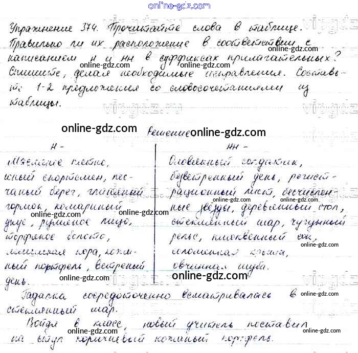Готовые домашние задания по Русскому языку за 6 класс Учебник Баранов, Ладыженская 2015 - Упражнения Часть 2 374