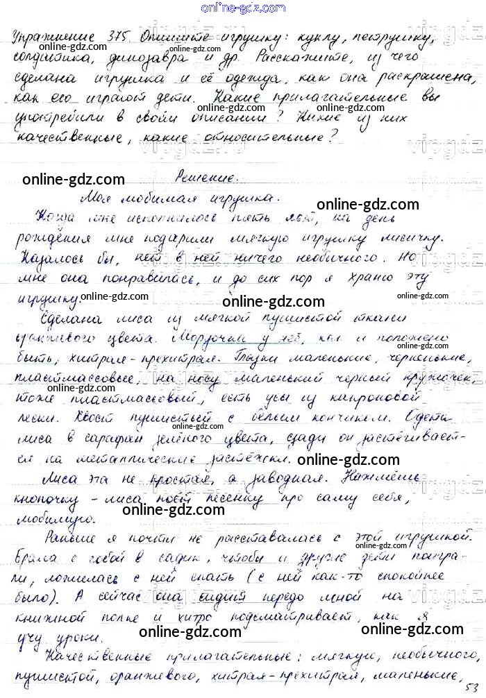 Готовые домашние задания по Русскому языку за 6 класс Учебник Баранов, Ладыженская 2015 - Упражнения Часть 2 375