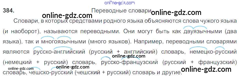 Готовые домашние задания по Русскому языку за 6 класс Учебник Баранов, Ладыженская 2015 - Упражнения Часть 2 384