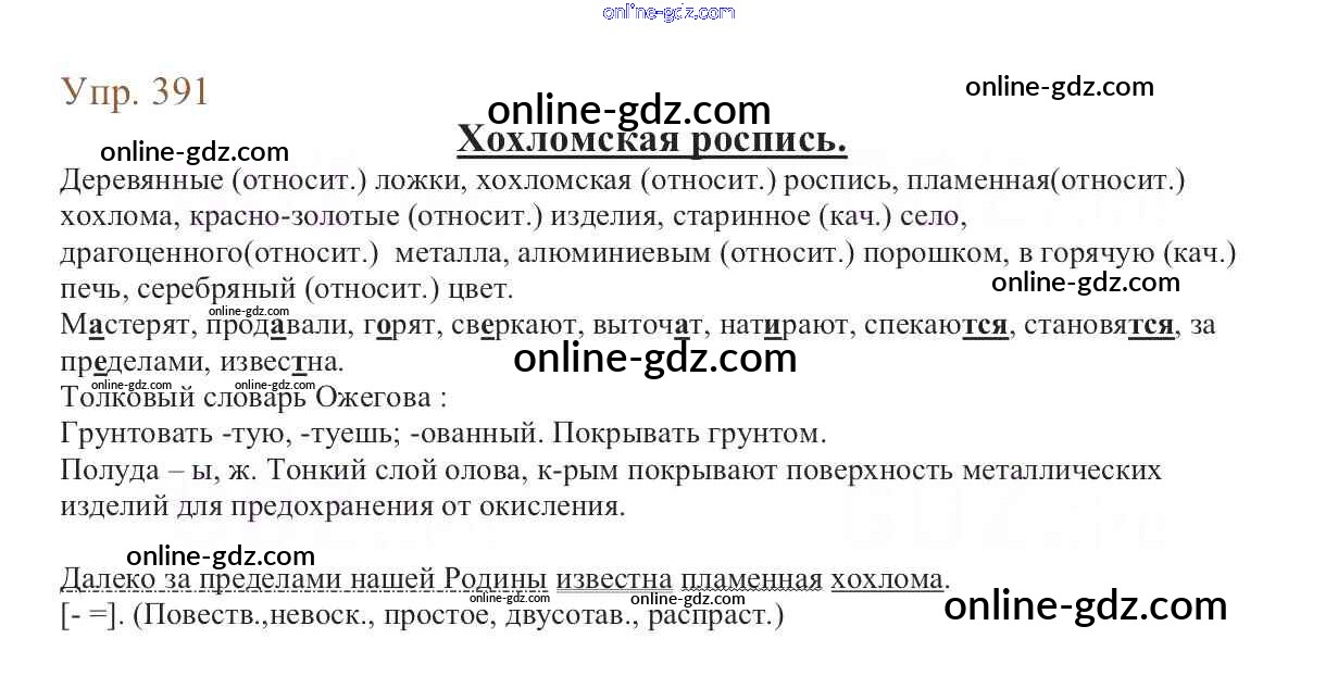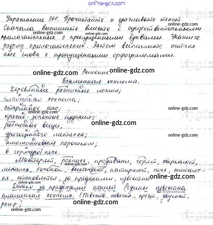 Готовые домашние задания по Русскому языку за 6 класс Учебник Баранов, Ладыженская 2015 - Упражнения Часть 2 391