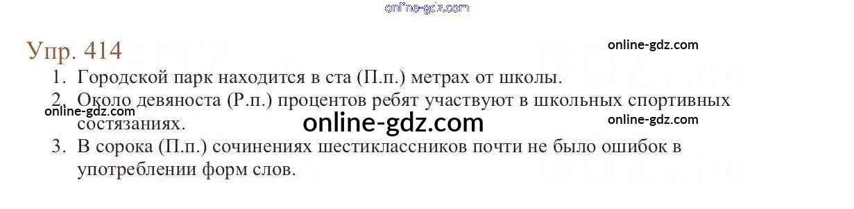 Готовые домашние задания по Русскому языку за 6 класс Учебник Баранов, Ладыженская 2015 - Упражнения Часть 2 414
