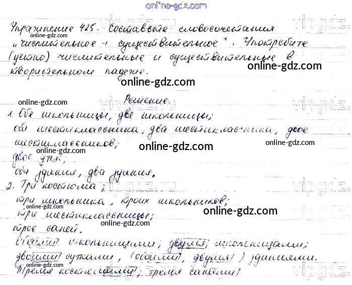 Готовые домашние задания по Русскому языку за 6 класс Учебник Баранов, Ладыженская 2015 - Упражнения Часть 2 425