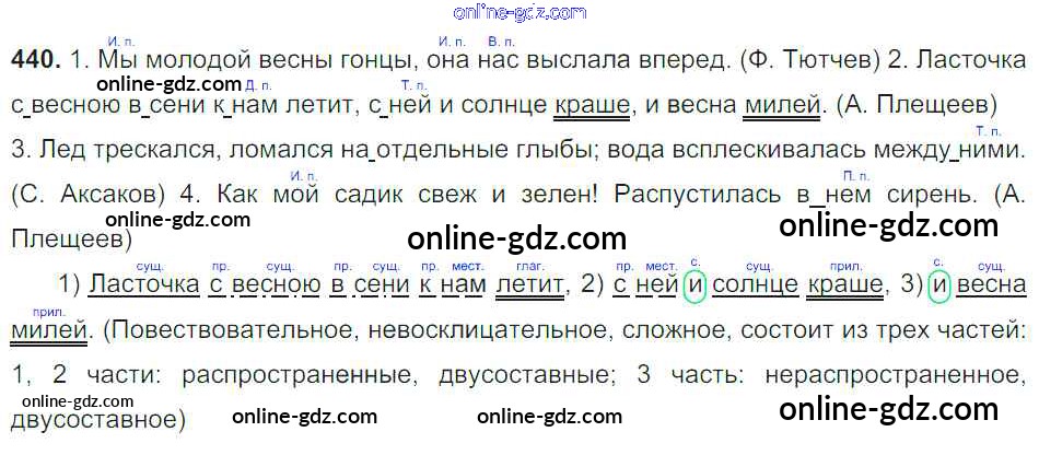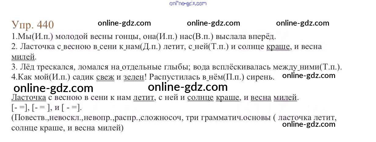 Готовые домашние задания по Русскому языку за 6 класс Учебник Баранов, Ладыженская 2015 - Упражнения Часть 2 440