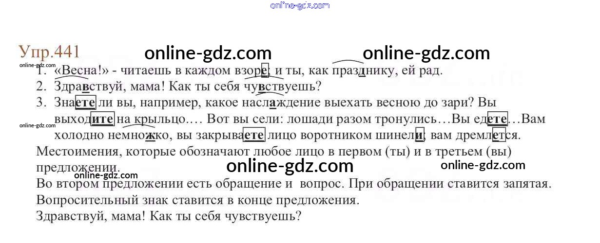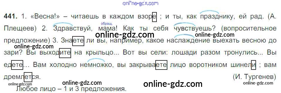 Готовые домашние задания по Русскому языку за 6 класс Учебник Баранов, Ладыженская 2015 - Упражнения Часть 2 441