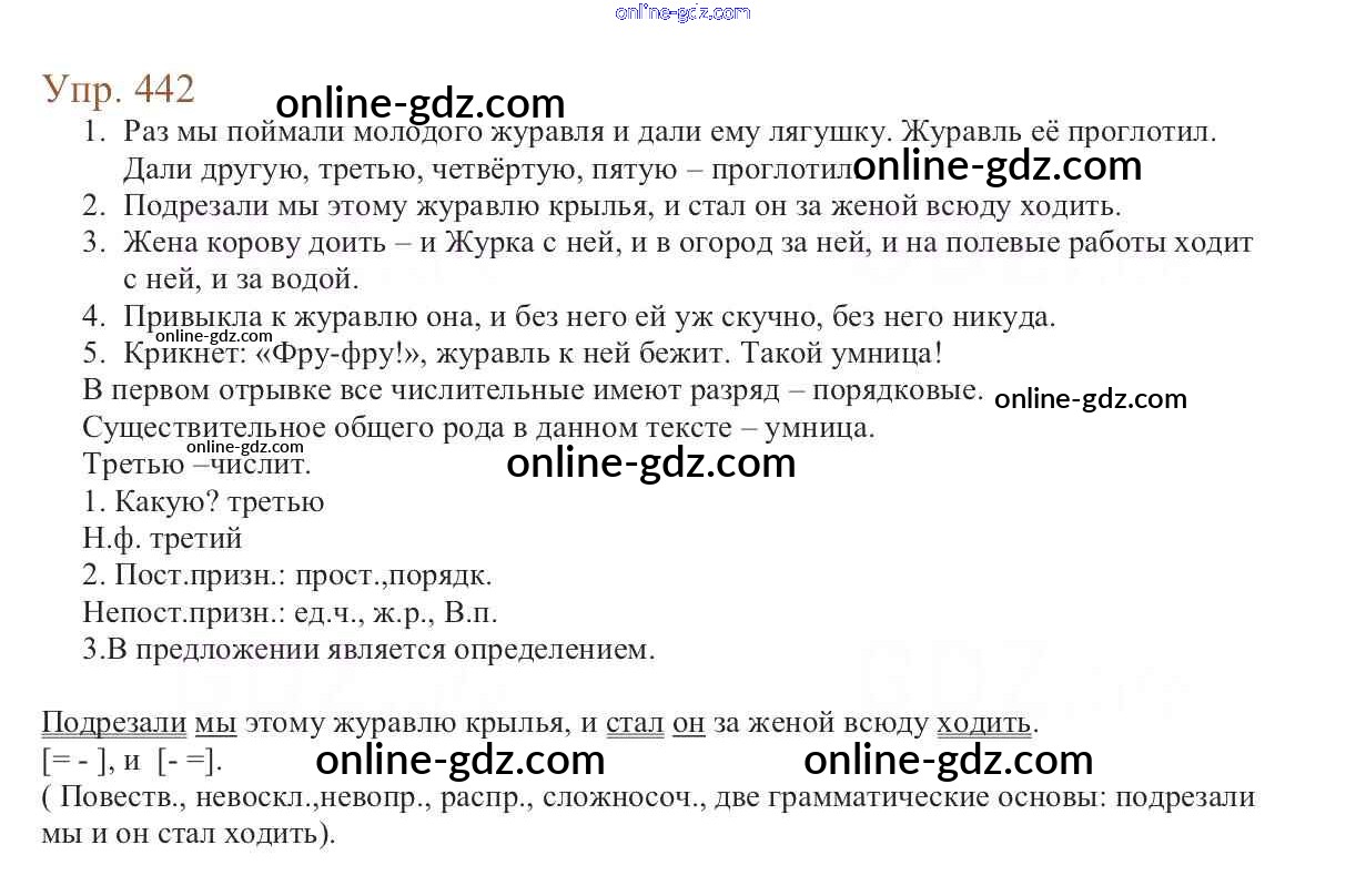 Готовые домашние задания по Русскому языку за 6 класс Учебник Баранов, Ладыженская 2015 - Упражнения Часть 2 442