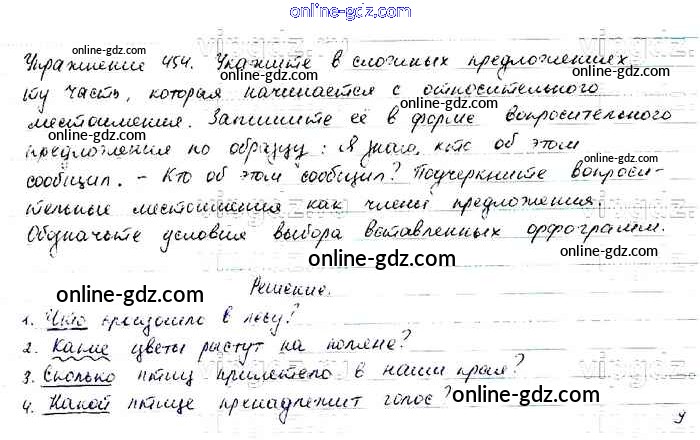 Готовые домашние задания по Русскому языку за 6 класс Учебник Баранов, Ладыженская 2015 - Упражнения Часть 2 454
