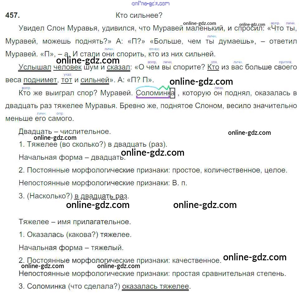 Готовые домашние задания по Русскому языку за 6 класс Учебник Баранов, Ладыженская 2015 - Упражнения Часть 2 457
