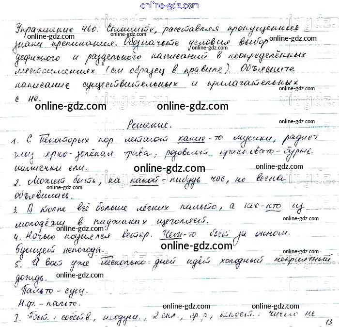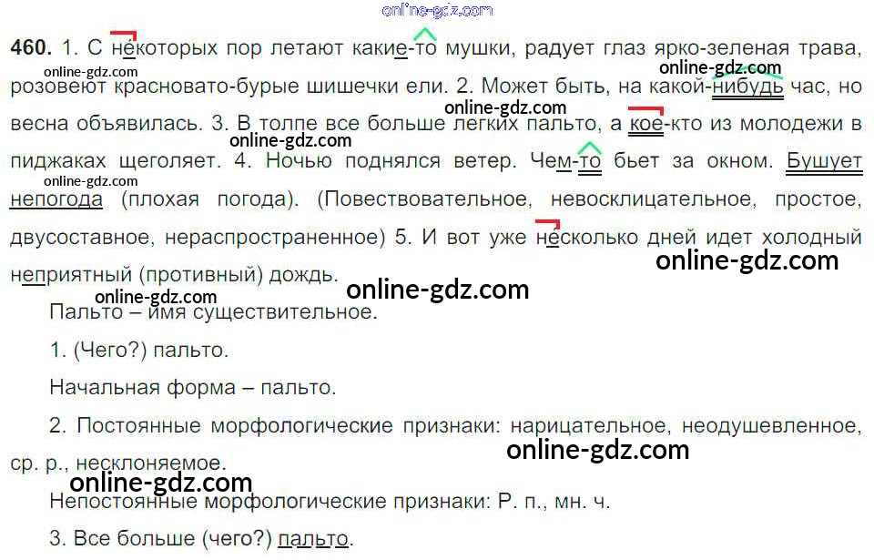Готовые домашние задания по Русскому языку за 6 класс Учебник Баранов, Ладыженская 2015 - Упражнения Часть 2 460