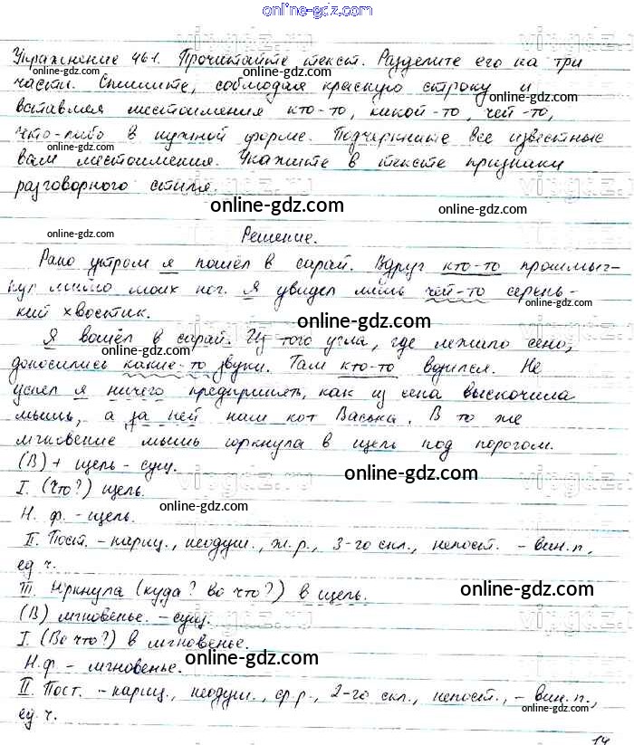 Готовые домашние задания по Русскому языку за 6 класс Учебник Баранов, Ладыженская 2015 - Упражнения Часть 2 461