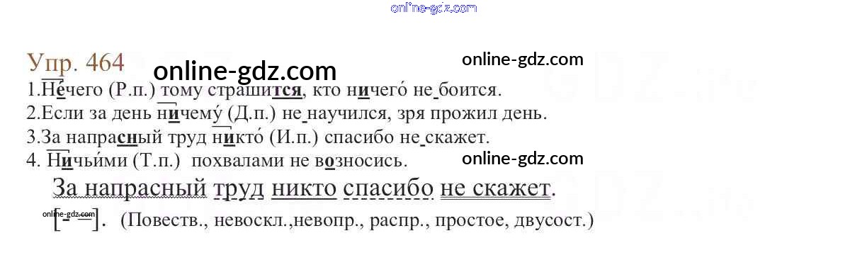 Готовые домашние задания по Русскому языку за 6 класс Учебник Баранов, Ладыженская 2015 - Упражнения Часть 2 464