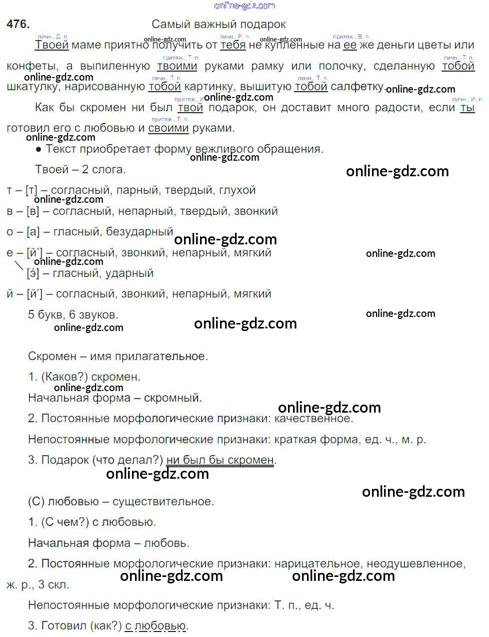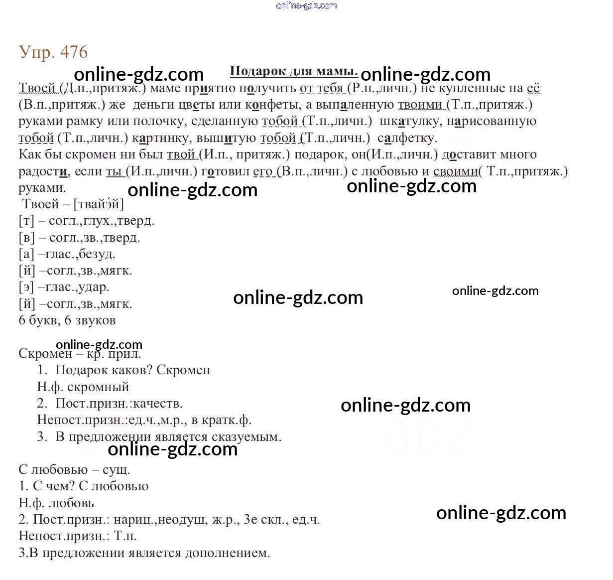 Готовые домашние задания по Русскому языку за 6 класс Учебник Баранов, Ладыженская 2015 - Упражнения Часть 2 476