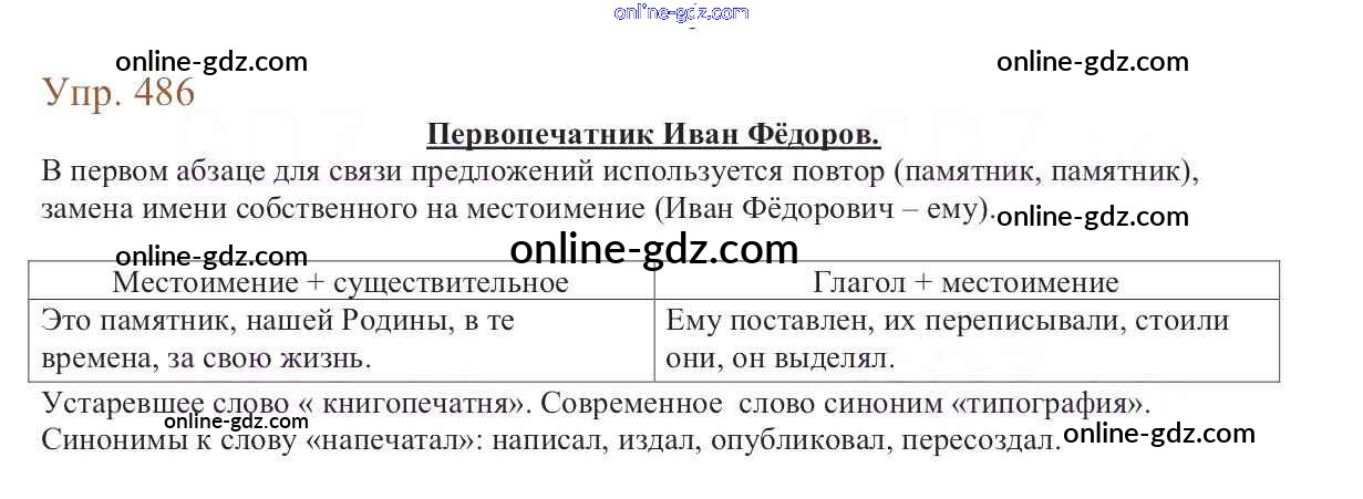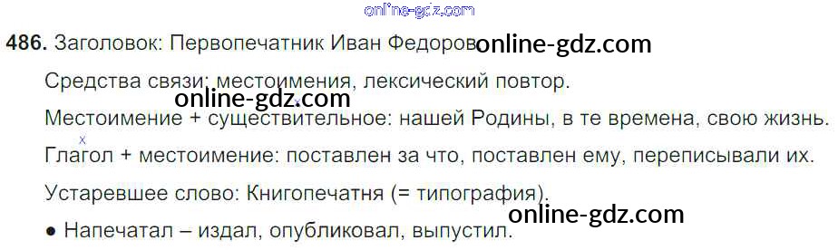 Готовые домашние задания по Русскому языку за 6 класс Учебник Баранов, Ладыженская 2015 - Упражнения Часть 2 486