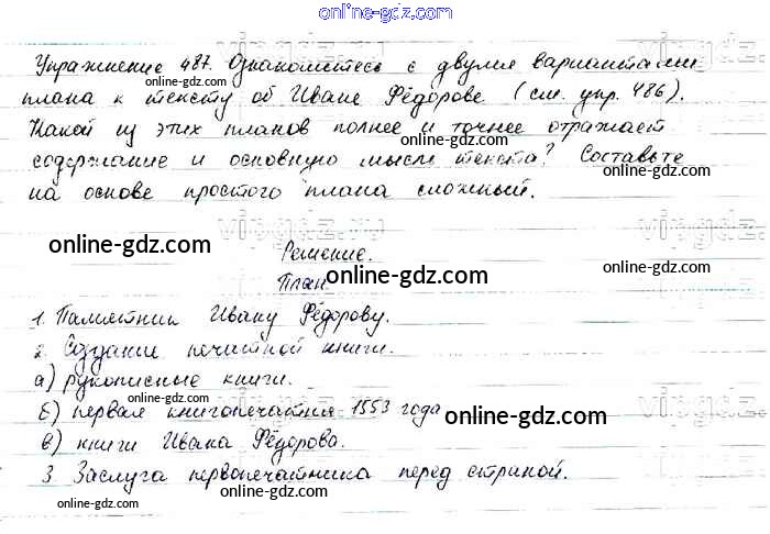 Готовые домашние задания по Русскому языку за 6 класс Учебник Баранов, Ладыженская 2015 - Упражнения Часть 2 487