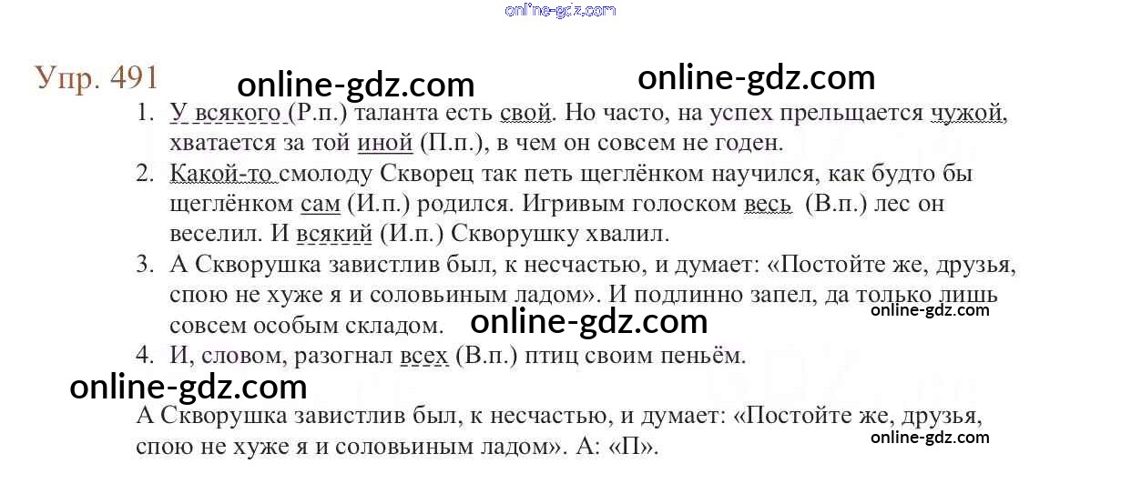Готовые домашние задания по Русскому языку за 6 класс Учебник Баранов, Ладыженская 2015 - Упражнения Часть 2 491