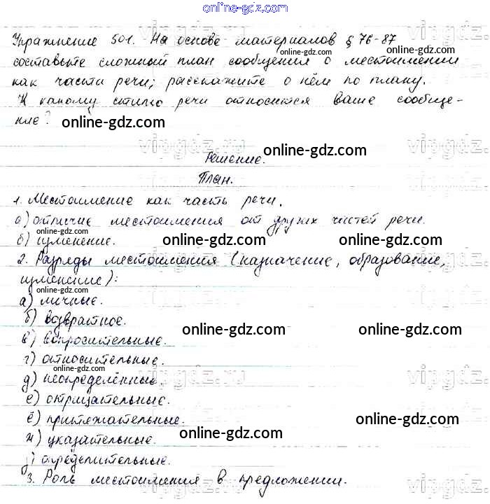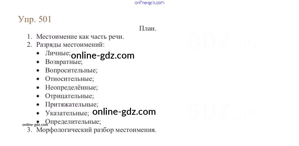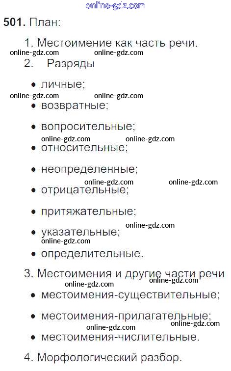 Готовые домашние задания по Русскому языку за 6 класс Учебник Баранов, Ладыженская 2015 - Упражнения Часть 2 501