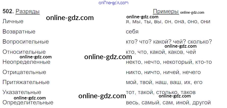 Готовые домашние задания по Русскому языку за 6 класс Учебник Баранов, Ладыженская 2015 - Упражнения Часть 2 502