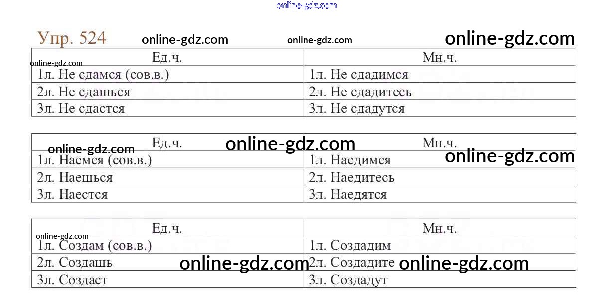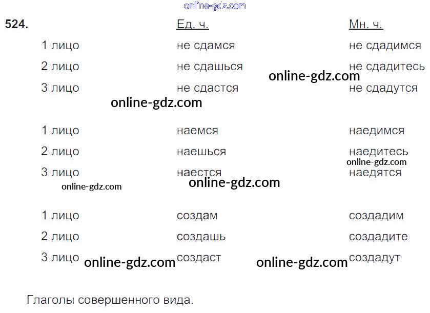 Готовые домашние задания по Русскому языку за 6 класс Учебник Баранов, Ладыженская 2015 - Упражнения Часть 2 524
