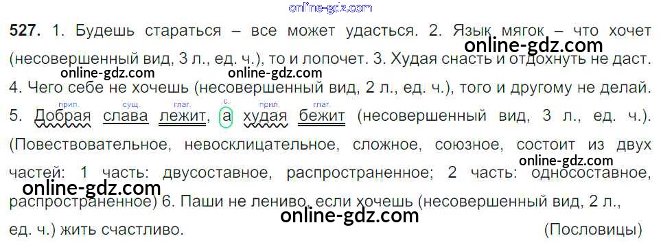 Готовые домашние задания по Русскому языку за 6 класс Учебник Баранов, Ладыженская 2015 - Упражнения Часть 2 527
