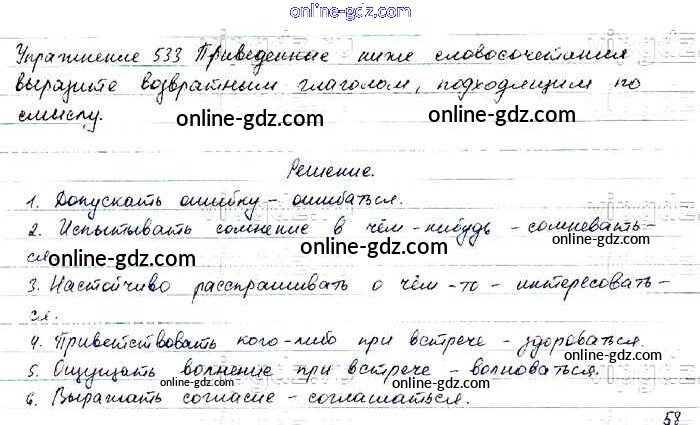 Готовые домашние задания по Русскому языку за 6 класс Учебник Баранов, Ладыженская 2015 - Упражнения Часть 2 533