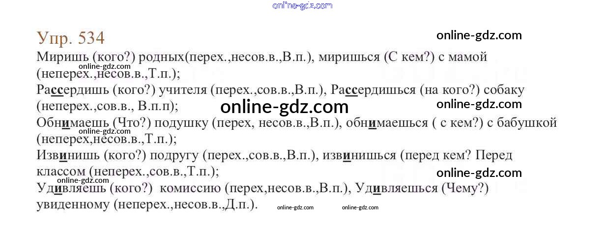 Готовые домашние задания по Русскому языку за 6 класс Учебник Баранов, Ладыженская 2015 - Упражнения Часть 2 534