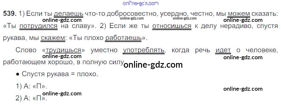 Готовые домашние задания по Русскому языку за 6 класс Учебник Баранов, Ладыженская 2015 - Упражнения Часть 2 539
