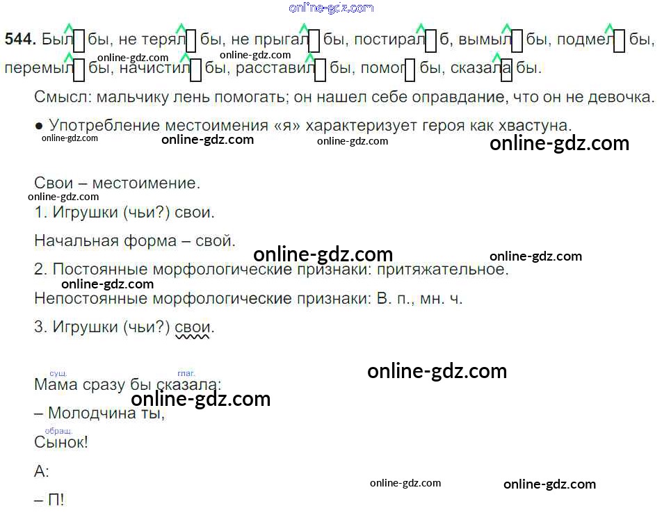 Готовые домашние задания по Русскому языку за 6 класс Учебник Баранов, Ладыженская 2015 - Упражнения Часть 2 544