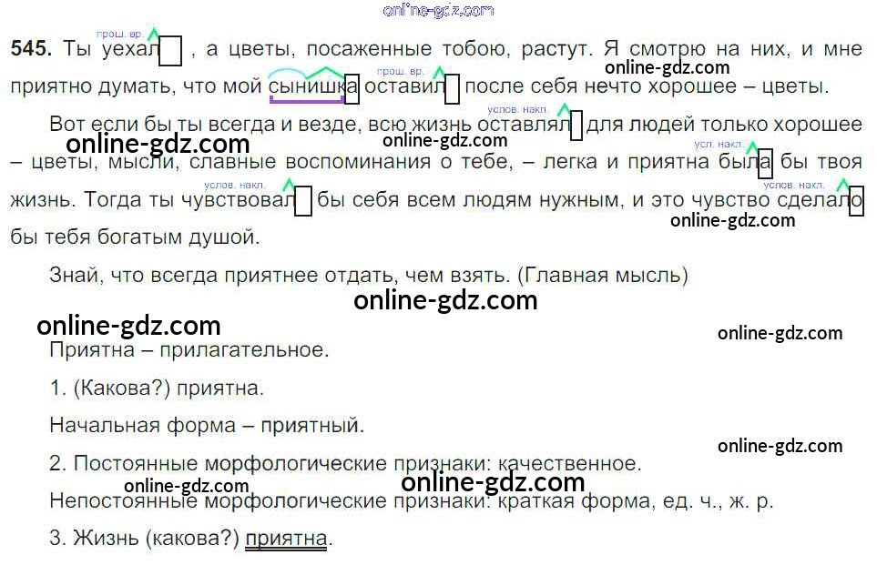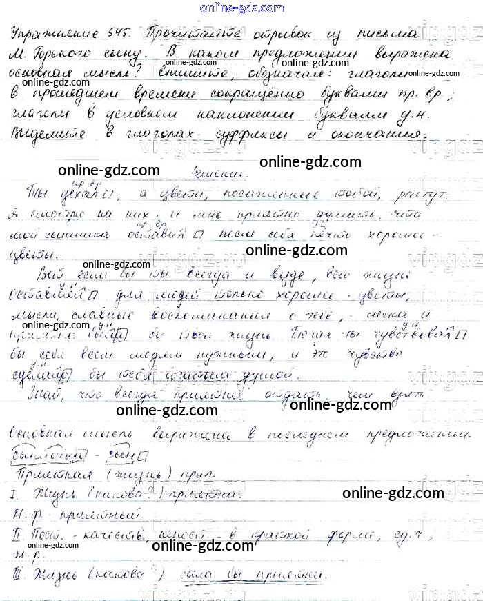 Готовые домашние задания по Русскому языку за 6 класс Учебник Баранов, Ладыженская 2015 - Упражнения Часть 2 545
