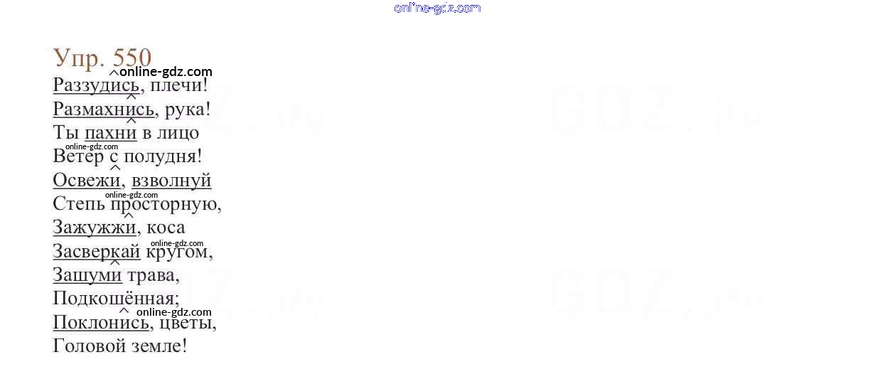 Готовые домашние задания по Русскому языку за 6 класс Учебник Баранов, Ладыженская 2015 - Упражнения Часть 2 550