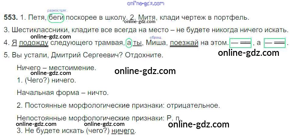 Готовые домашние задания по Русскому языку за 6 класс Учебник Баранов, Ладыженская 2015 - Упражнения Часть 2 553